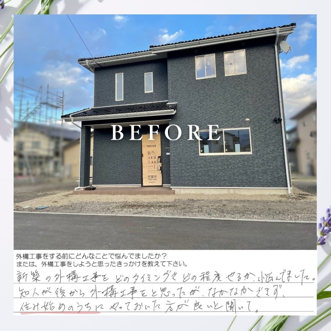 外構工事を「どのタイミングで」「どの程度やるか」悩まれていました。