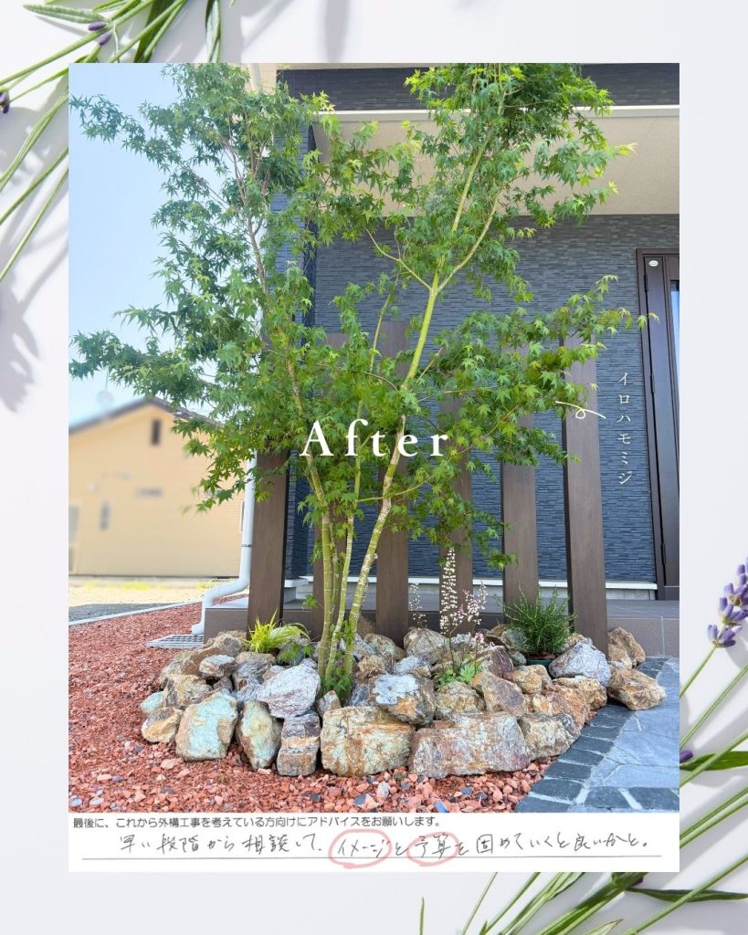 こちらのサンプロの家の外構は、阪本(旧姓:佐藤)が担当させていただきました。