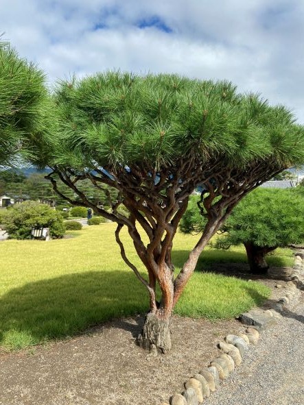 タギュウショウは、アカマツの変種で根元から沢山の幹が広がっています。松なのにあまり大きくならないのが特徴です。なかなか珍しい松ですので松本城へ行った際は是非探して見てみてください!