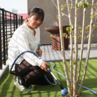 上田市にある植物園で三年ほど植物について勉強し、植物が大好きになった事がきっかけになり、「もっと植物の良さを知ってもらいたい」「もっと沢山の人がお庭に興味を持って、少しでも毎日に癒しと楽しさを感じて欲しい」そう思っていたら今のお仕事に辿り着きました。