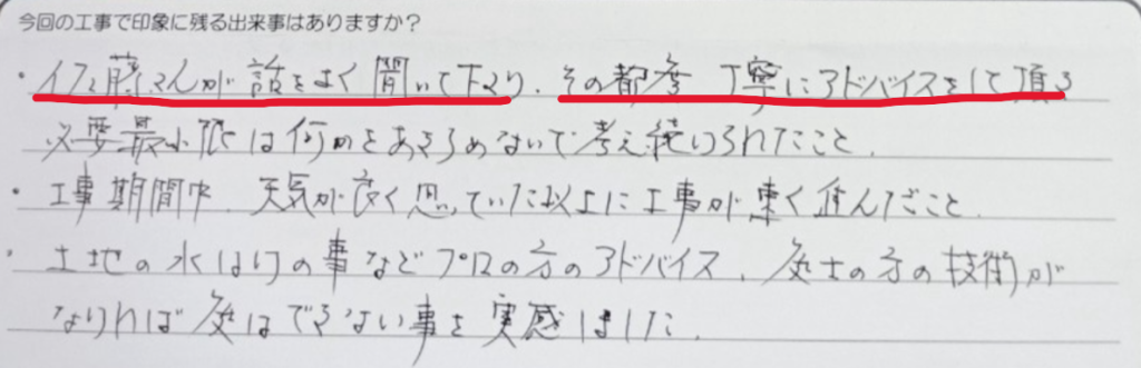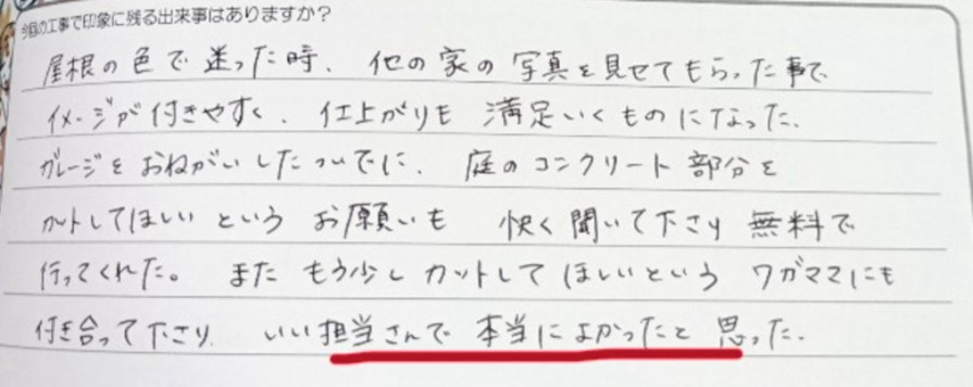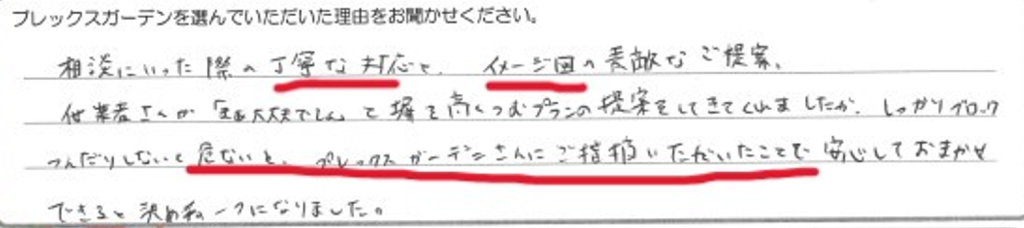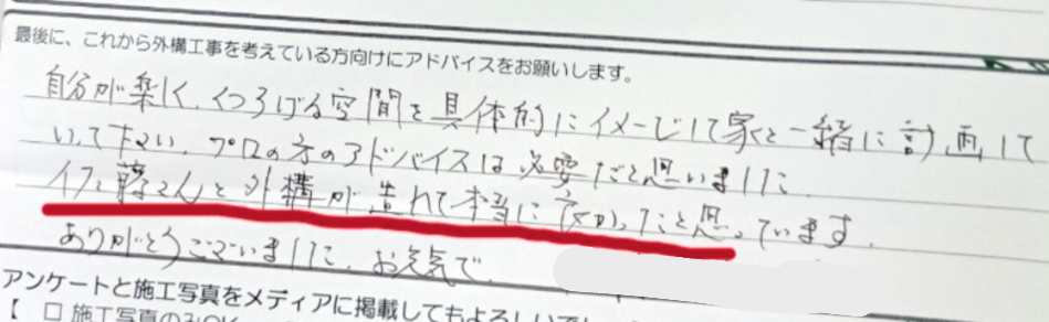 プレックスガーデンでは完工したお客様にアンケートの回答を任意でお願いしています。