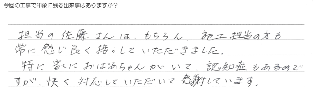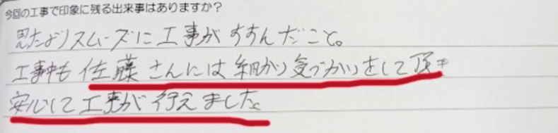 リピート工事のご依頼も多く、彼女の「お客さまを思っての言動の一つ一つ」が