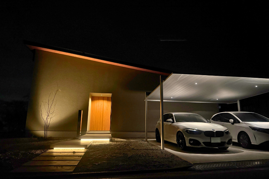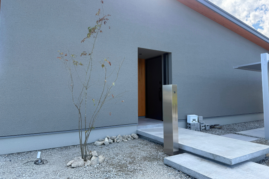 この現場の詳しい説明はコチラ→【施工事例】サンプロの平屋に映える外構|お洒落なミニマル外構
